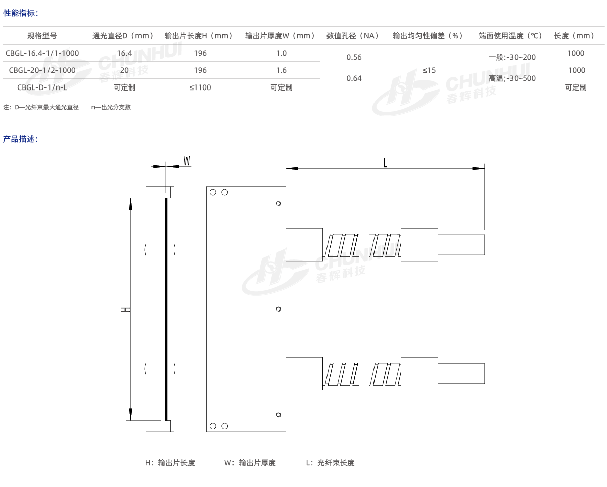 光譜傳輸范圍廣、傳光效率高、光輸出均勻。