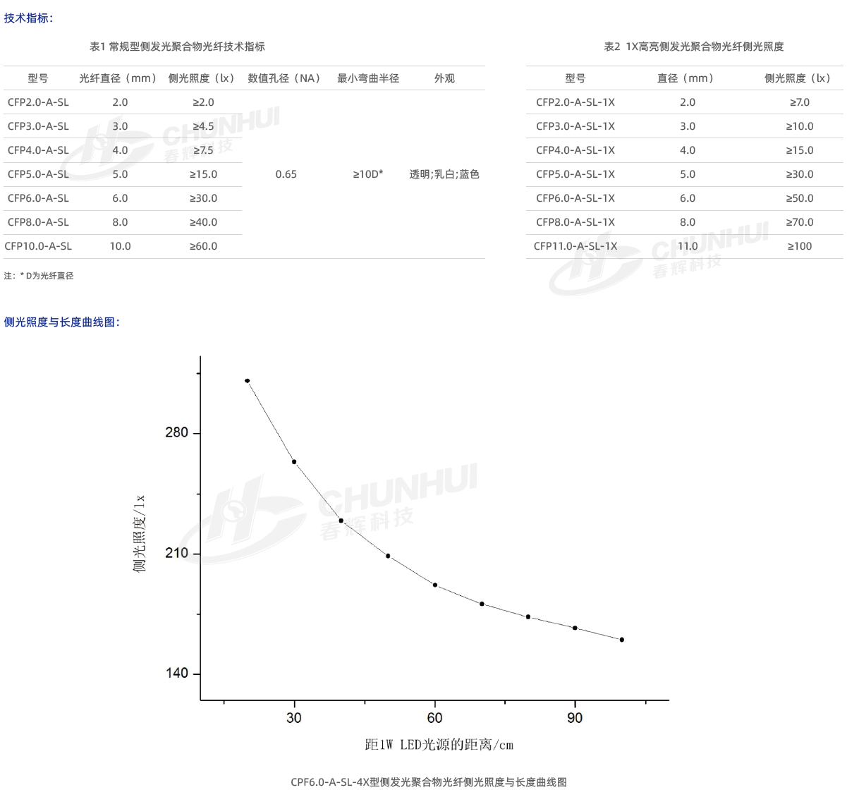 在波長650nm處, 常規(guī)型側(cè)發(fā)光聚合物光纖每米透光率大于90%以上,導(dǎo)光距離可達(dá)40m;